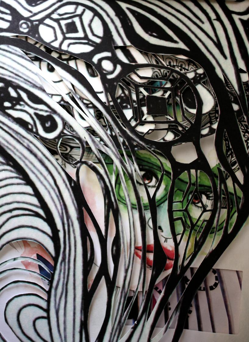 ReplyDeleteBasically what I did was integrate these patterns into the portraits, and into the hair. I scanned them in and zoomed on certain parts and focus on one are. I then printed them out on card paper and slowly, using a paper knife, cut out the bits i didn't want.